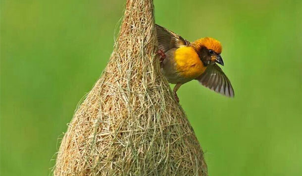 - من علفهای تازه و شاخههای نازک را جمع میکنم و با نوک تیزم آنها را به هم میبافم.